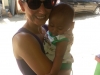 Charlotte et Dorothée découvrent aussi – avec beaucoup de plaisir – la puissance des vagues (elles sautent dedans et se laissent ramener sur le bord en flottant). Elles sont aussi impressionnées par l’agileté de certains surfers – et moi donc! Sur le chemin du retour, elles ne se font pas prier pour faire la sieste… sur la moto!
